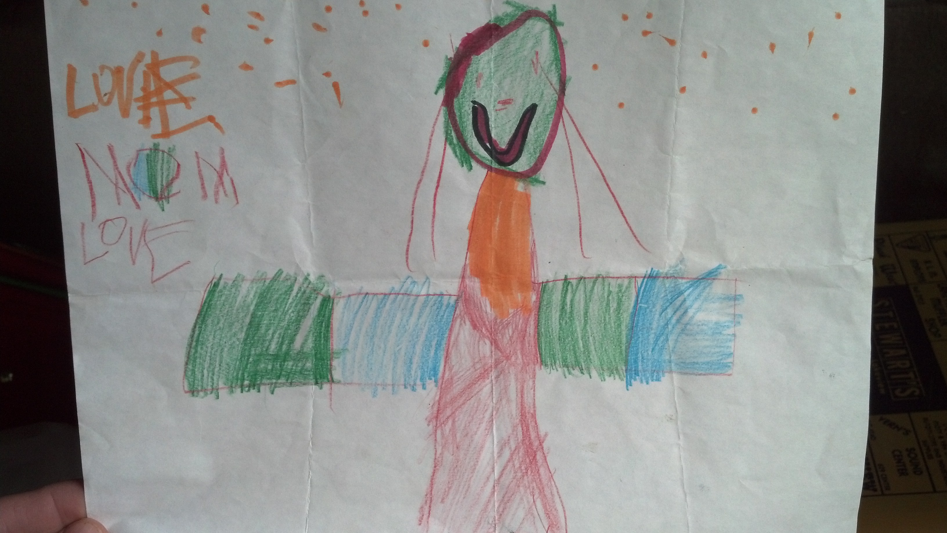 Do you know why you have such big arms Mom? It’s so you can give really big hugs! Thanks for sharing this special artwork with us 🙂