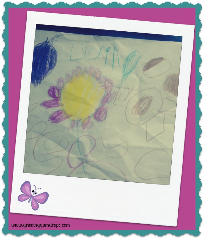 Lydia had pictures drawn for nearly every person close to her. She had written their names on their paper and drawings of each of them: Grandma, Nana, Papa, Daddy, Mom, Brother, Cousins, and more! The drawings were composed of vibrant colors, people, hearts, flowers, sparkles and everything you could imagine. So beautiful.
