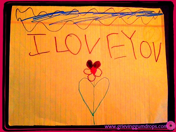 On the paper, Lydia had drawn a flower and in big letters she had written, “I love you!”